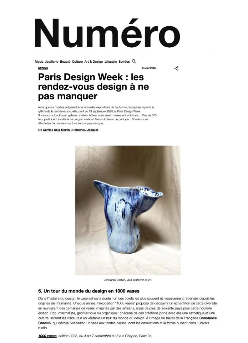 Dans l’histoire du design, le vase est sans doute l’un des objets les plus souvent et massivement repensés depuis les origines de l’humanité. Chaque année, l’exposition “1000 vases” propose de découvrir un échantillon de cette diversité en réunissant des centaines de vases imaginés par des artisans, issus de plus de soixante pays pour cette nouvelle édition. Pop, minimaliste, géométrique ou organique : chacune de ces créations porte avec elle une esthétique et une culture, invitant les visiteurs à un véritable un tour du monde du design. À l’image du travail de la Française Constance Charvin, qui dévoile Seaflower, un vase aux teintes bleues, dont les ondulations et la forme puisent dans l’univers marin.